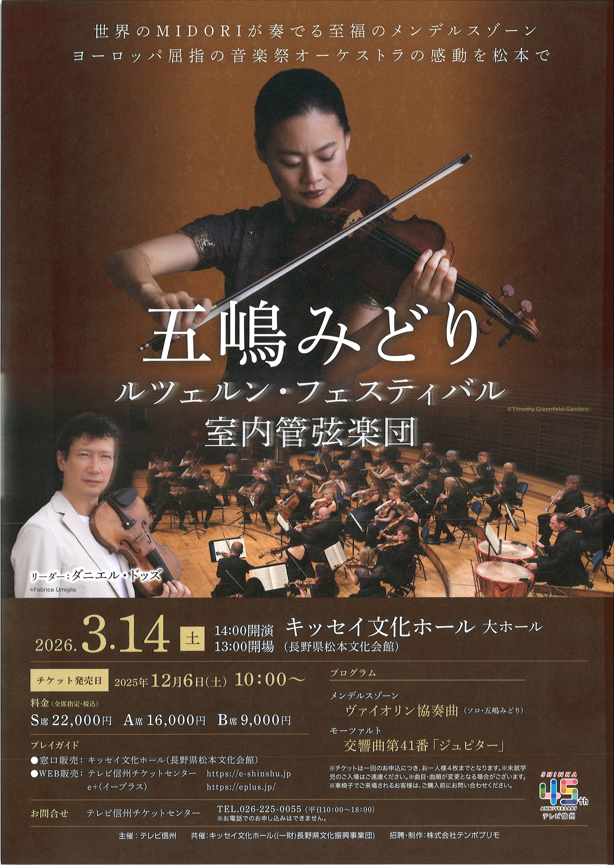 【12月6日(土) チケット発売】テレビ信州開局45周年記念 五嶋みどり with ルツェルン・フェスティバル室内管弦楽団